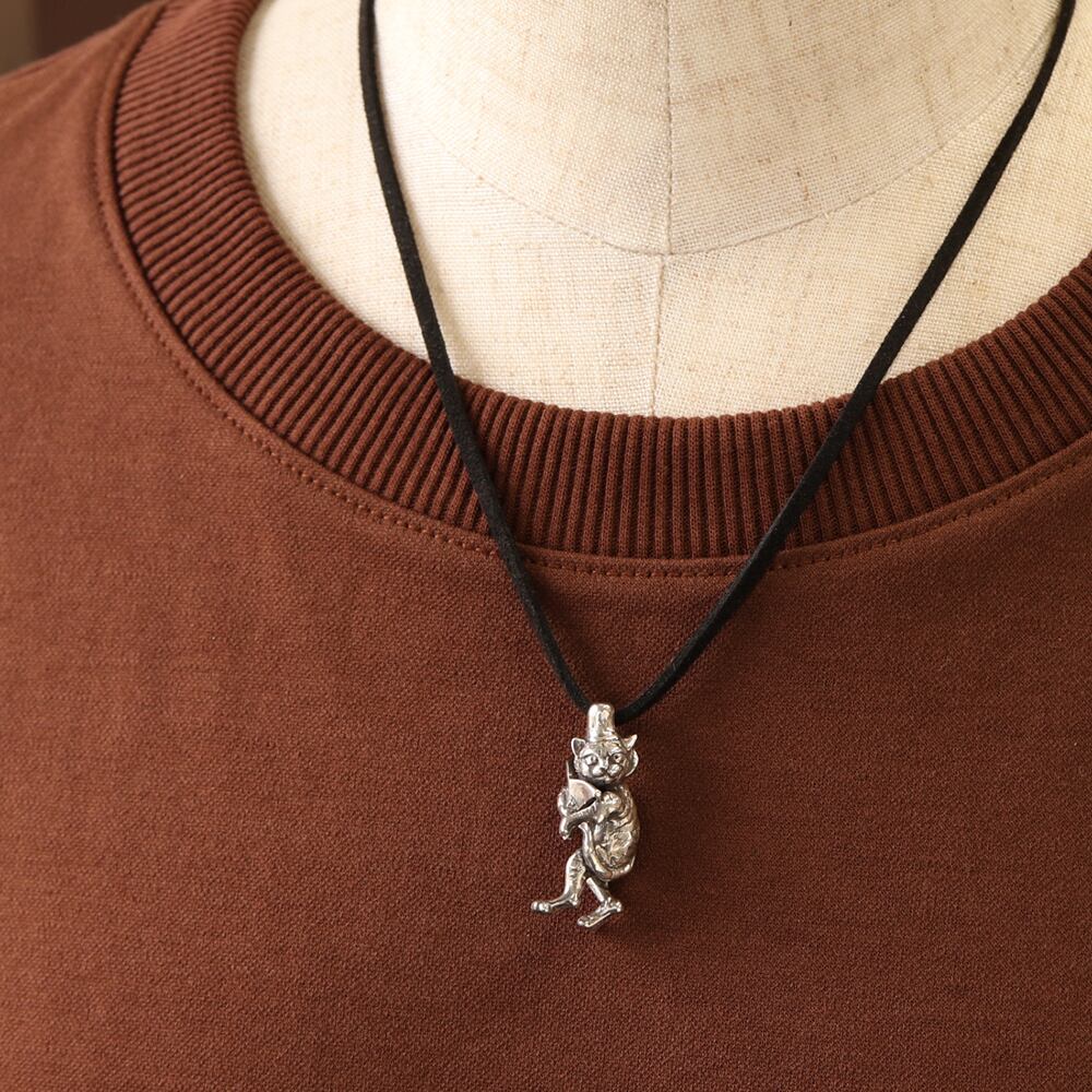 鳥獣戯画の中でも、一番の自由人(?)な猫をモチーフにした、銀製のネックレスです。他の動物たちが相撲や遊びに夢中な中、マイペースに我が道を行く姿を表現しました。誰にも媚びず、でもどこか愛らしい。そんな猫のクールな魅力を感じてみてください。