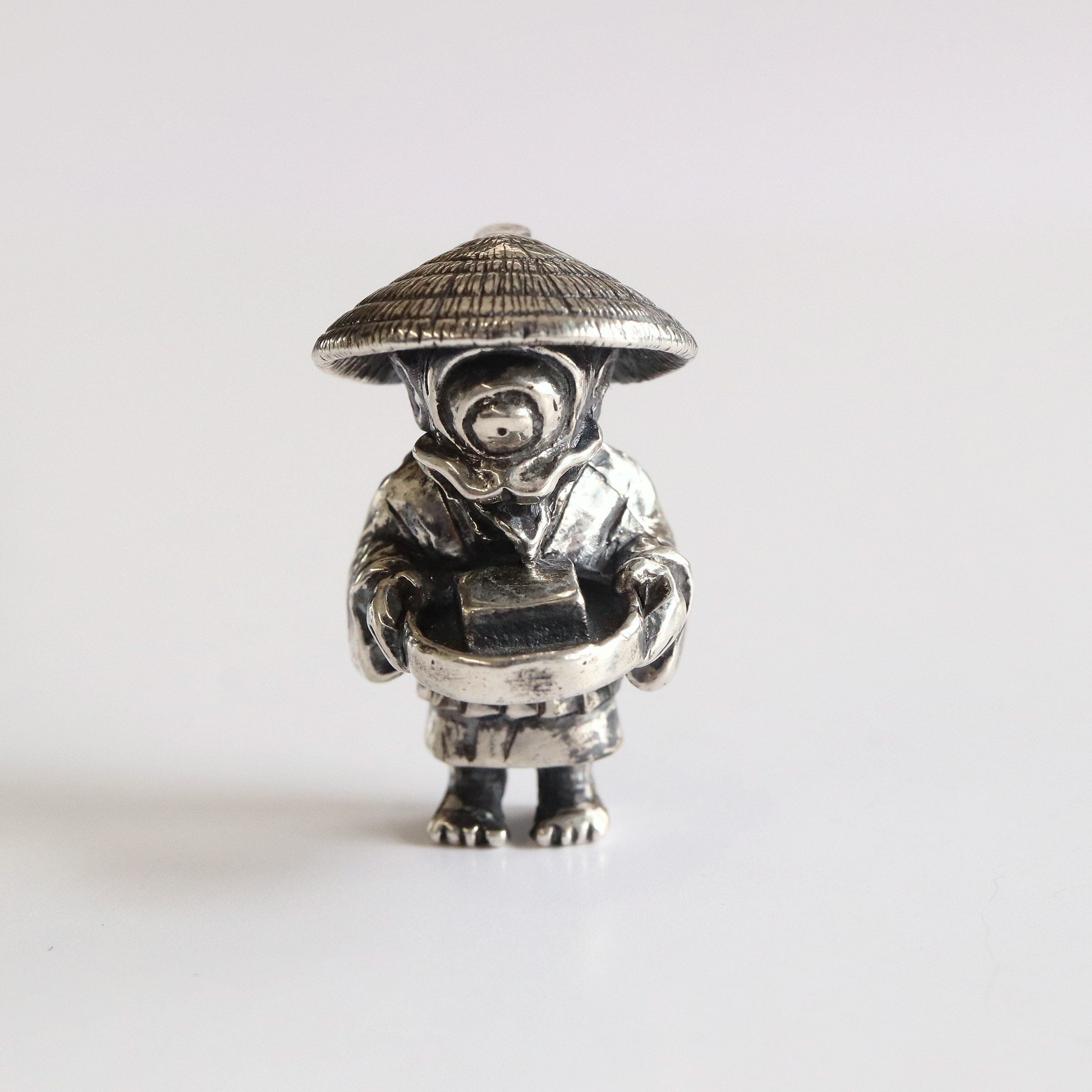 顔の真ん中にぎょろりとした大きな目が一つある小坊主(子供の僧)姿の妖怪。いたずら好きで、そこか憎めないキャラクター。豆腐を好むという説から、豆腐をなめる姿の一つ目小僧を制作しました。
